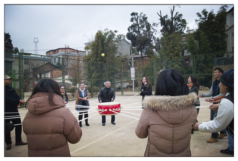 拓展訓(xùn)練在晨龍生態(tài)農(nóng)場基地進(jìn)行,活動(dòng)當(dāng)天剛好遇到昆明降溫,還飄起了小雪,但是依然阻擋不了我們的腳步。參加人員被隨機(jī)分為兩隊(duì),通過集體討論,確定了各自的隊(duì)長。在訓(xùn)練過程中,兩支隊(duì)伍展開了激烈的競爭和活潑的互動(dòng)活動(dòng),隊(duì)員們都顯示出良好的精神狀態(tài),團(tuán)隊(duì)相互配合、集體協(xié)作,相繼完成了車輪滾滾、擊鼓顛球和10人11足等拓展訓(xùn)練項(xiàng)目。