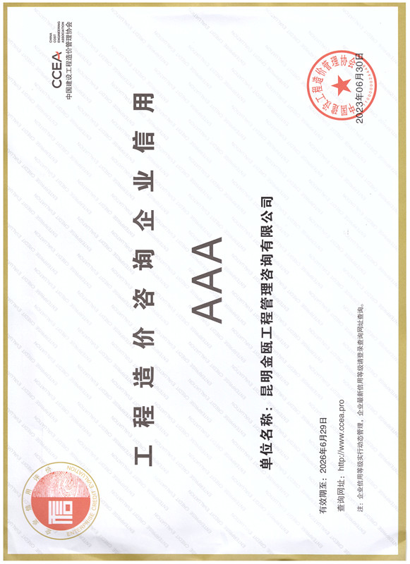 工程造價(jià)咨詢企業(yè)信用AAA證書(shū)認(rèn)證—中國(guó)建設(shè)工程造價(jià)管理協(xié)會(huì)